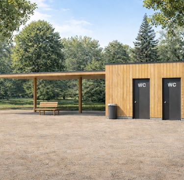 construction d’un kiosque équipé de sanitaires.