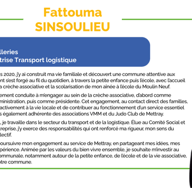 Sur le plan professionnel, je travaille dans le secteur du transport et de la logistique. Élue au Comité Social et Économique de mon entreprise, j’y exerce des responsabilités qui ont renforcé ma rigueur, mon sens du dialogue et du travail collectif.