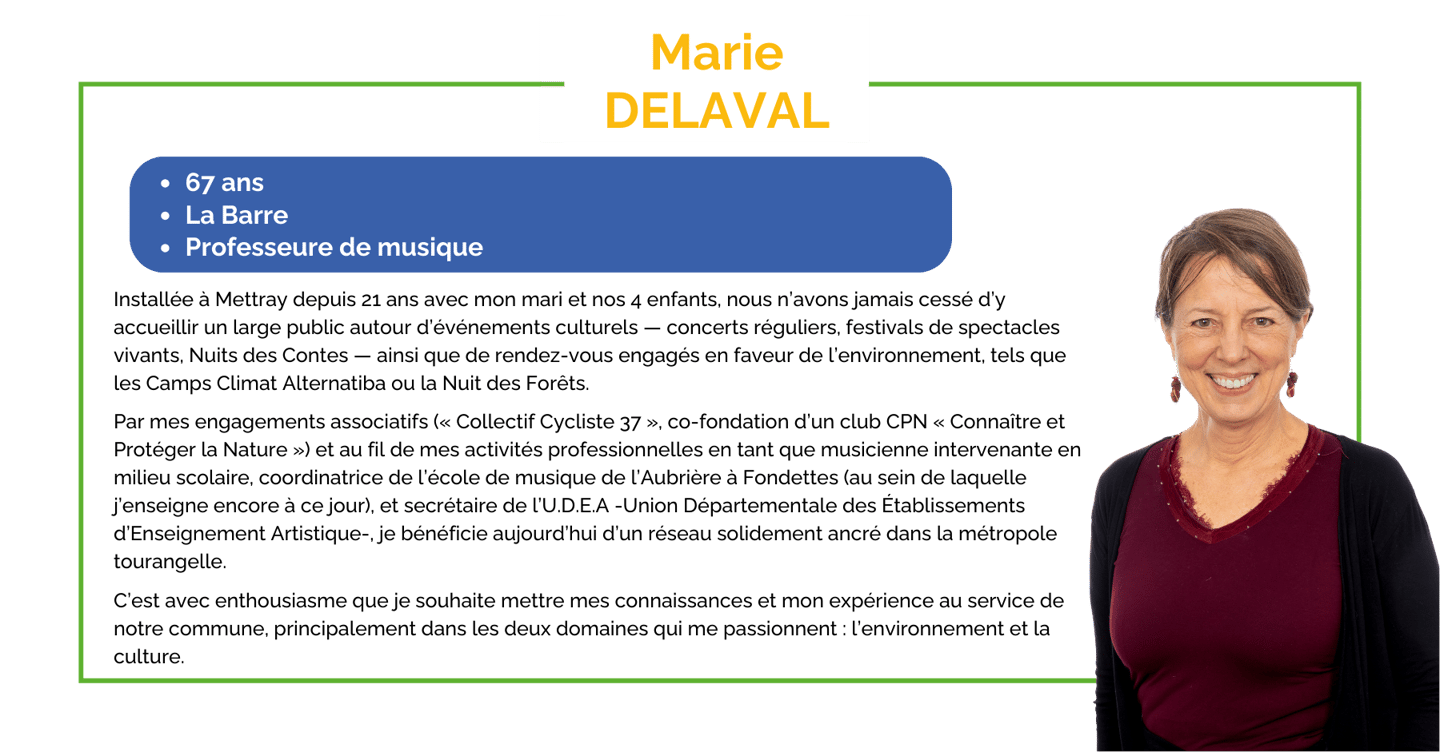 Installée à Mettray depuis 21 ans avec mon mari et nos 4 enfants, nous n’avons jamais cessé d’y accueillir un large public autour d’événements culturels — concerts réguliers, festivals de spectacles vivants, Nuits des Contes — ainsi que de rendez-vous engagés en faveur de l’environnement, tels que les Camps Climat Alternatiba ou la Nuit des Forêts.